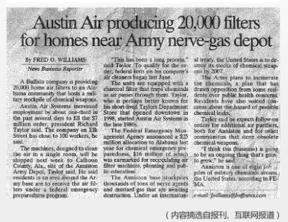2001年,9.11事件后,美國聯(lián)邦應(yīng)急管理局(FEMA)、美國國土安全部(DHS)、美國紅十字會等機(jī)構(gòu),均針對室內(nèi)空氣環(huán)境提出了全新標(biāo)準(zhǔn),并一致推薦奧司汀產(chǎn)品,稱其為最值得信賴的空氣凈化器! 同年,美國紐約政府采購?qiáng)W司汀空氣凈化器20,000臺,用于Alibama州的Anniston軍事基地周邊村民的健康保障工作。